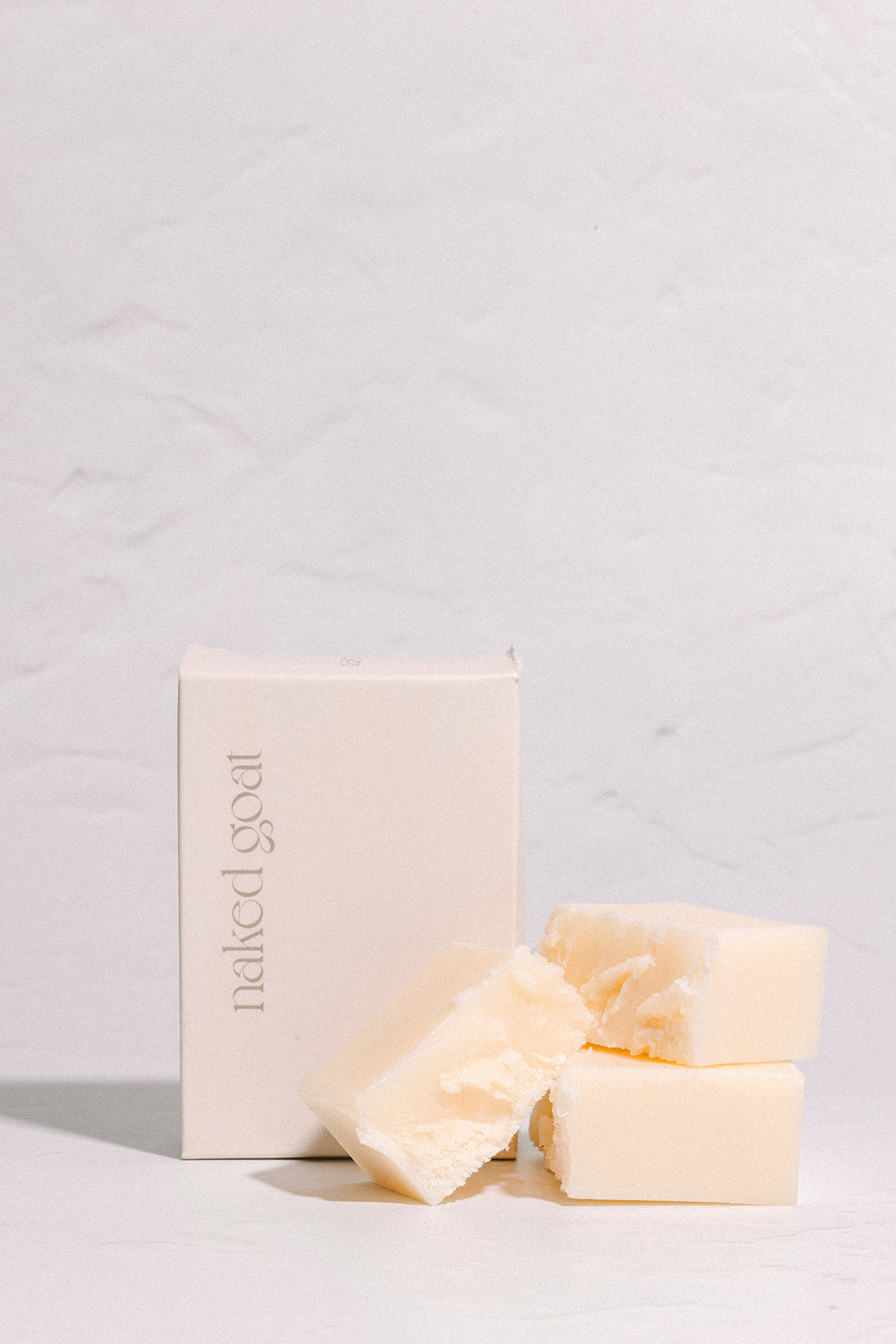 Created in small batches, this unique goat milk soap is carefully crafted by Naked Goat Soap in their Virginia-based studio using the cold-process method which better maintains the skin-loving properties of their ultra-rich formula. Each slice is hand-cut and then cured for no less than eight weeks. Made with pure plant-based oils and butters, their formula is an effortless way to elevate daily moments and serves as a reminder that there is beauty in simplicity.