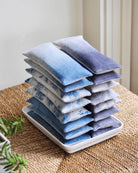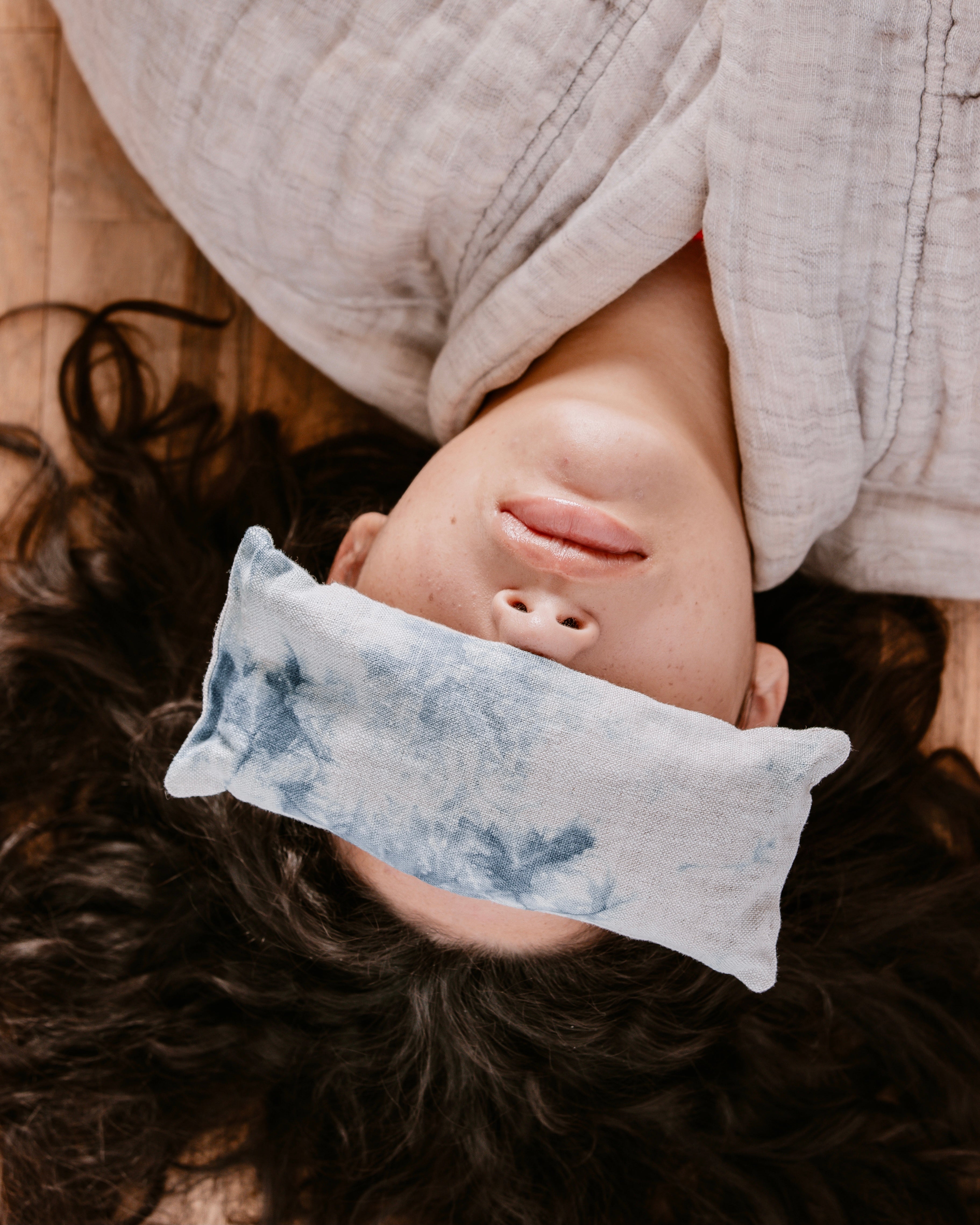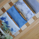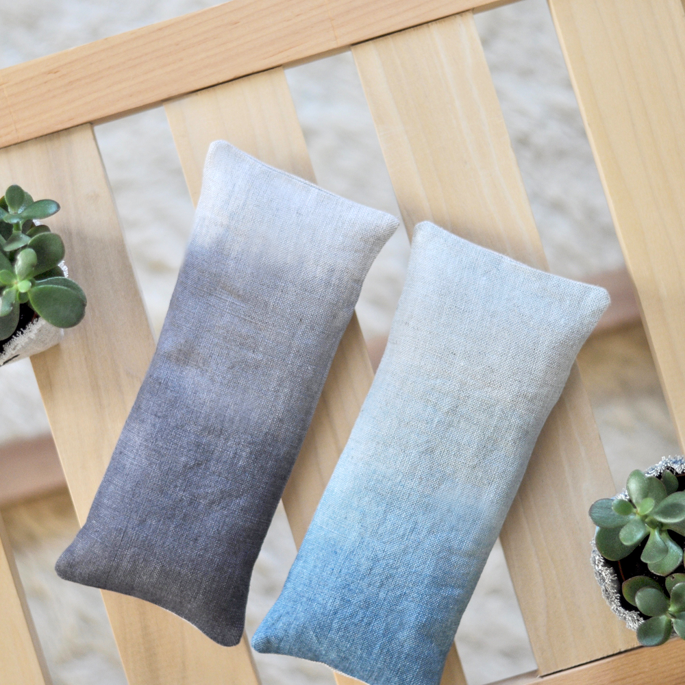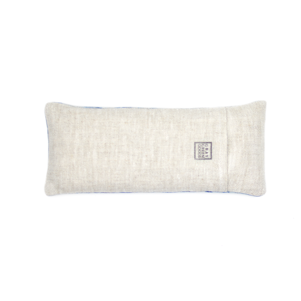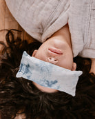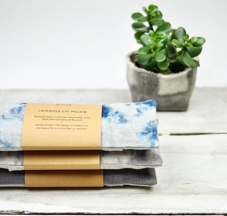 Soothe your eyes and quiet your mind with this organic lavender and organic flax-filled eye pillow. The cover is a natural-color 100% linen, dyed in a cloud pattern with indigo. The cover is removable for washing. The cotton muslin inner pillow is filled with a relaxing blend of organic lavender and organic flaxseed.