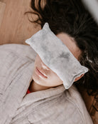 This eye pillow can be used in two ways: stored in a freezer for up to an hour before use or warmed in a microwave for up to 30 seconds, then placed over your eyes for a tranquil break.