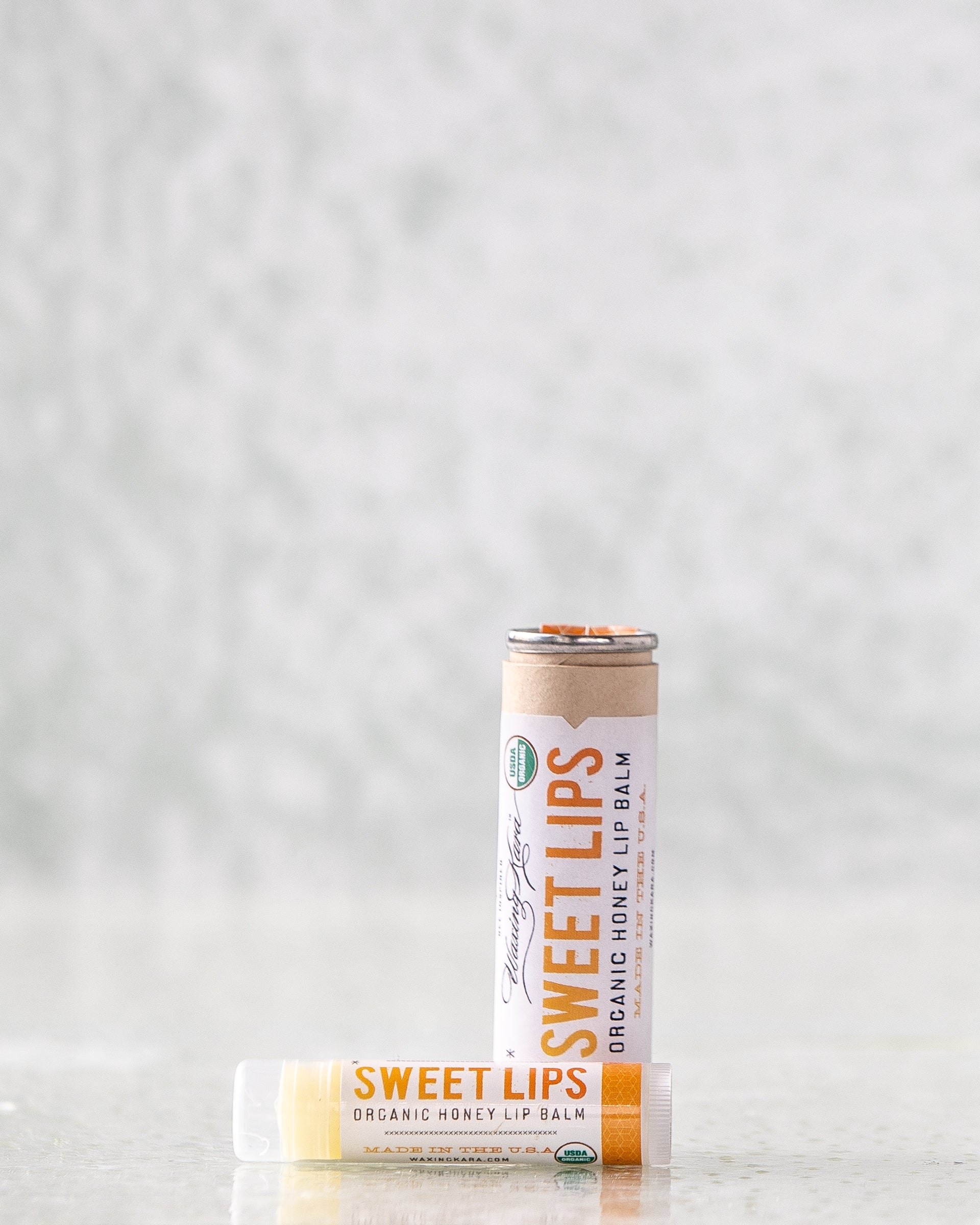 Sweet Lips Honey Lip Balm smoothly glides on with a slightly-sweet honey finish. There are no artificial flavorings in any of Waxing Kara’s lip products. Made entirely in the USA, our Honey Lip Balm is USDA Certified Organic and paraben, phthalate, and GMO-free. Made without petroleum products, so it is better for you and the environment.