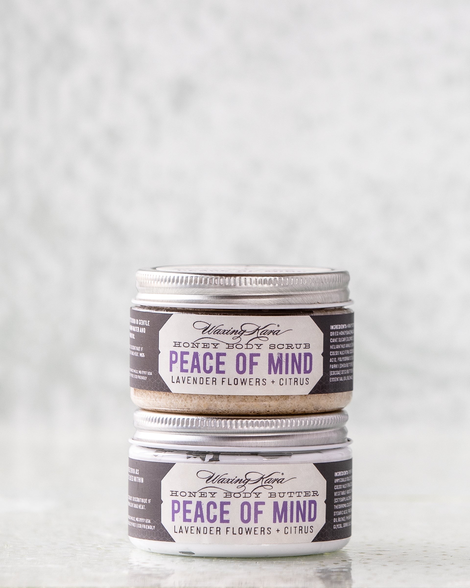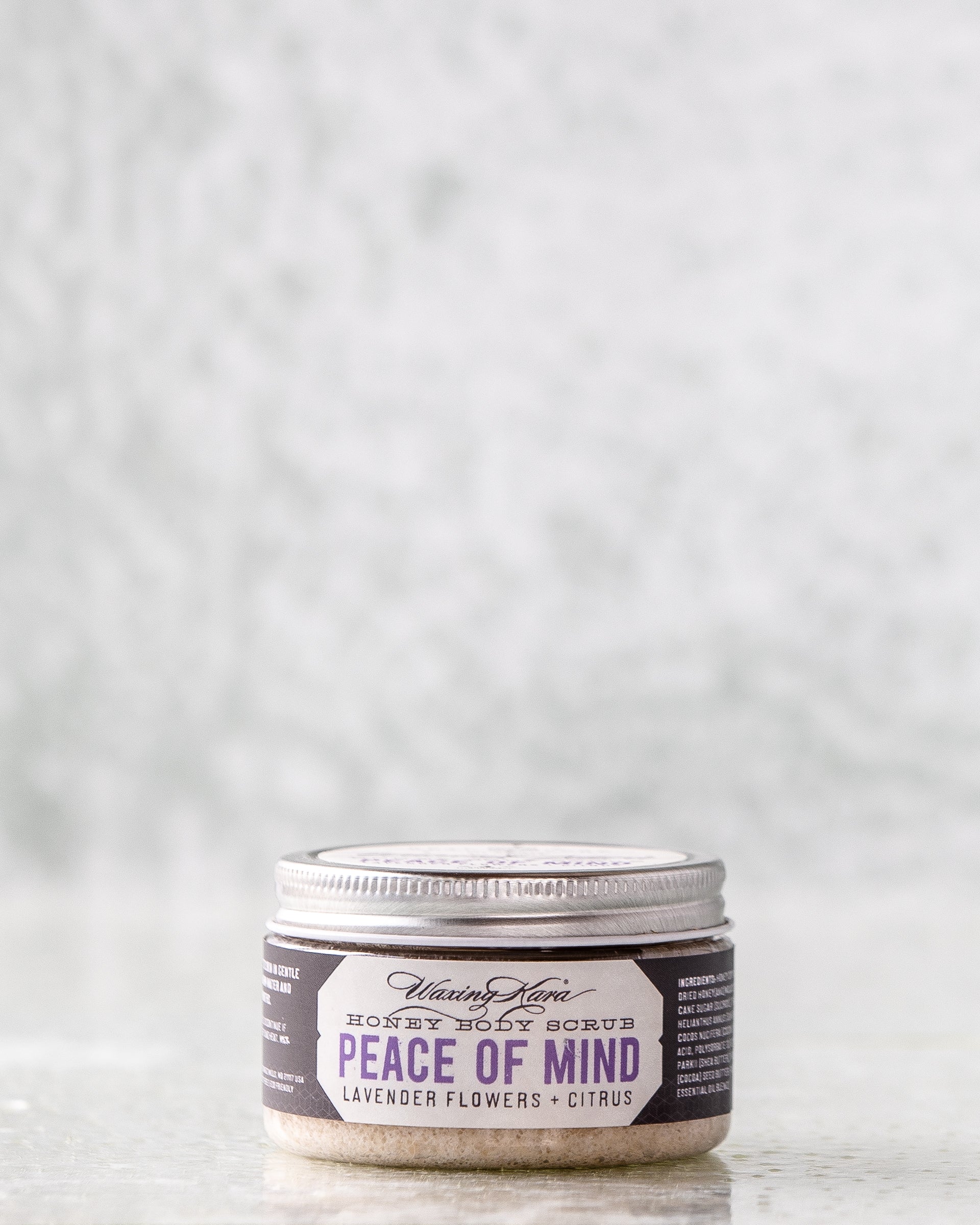Peace of Mind Scrub is made with natural and organic ingredients including organic honey crystals and organic sugar. We recommend using this honey body scrub before bed in support of a good night’s sleep. Peace of Mind Scrub features lavender and citrus essential oils and an 84% organic formulation.